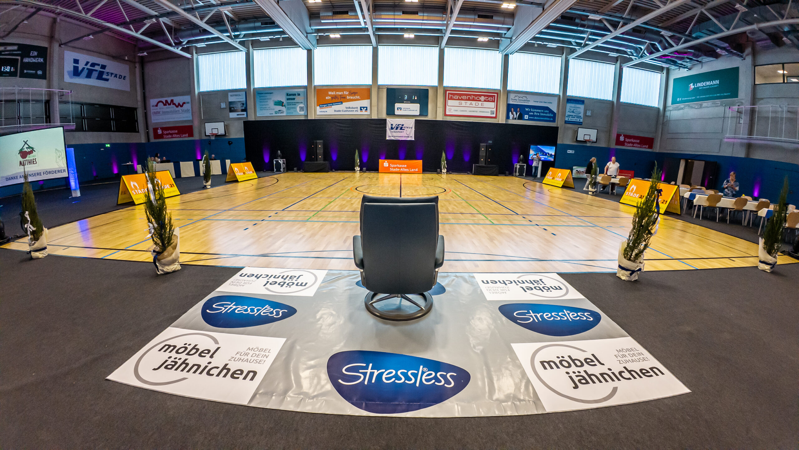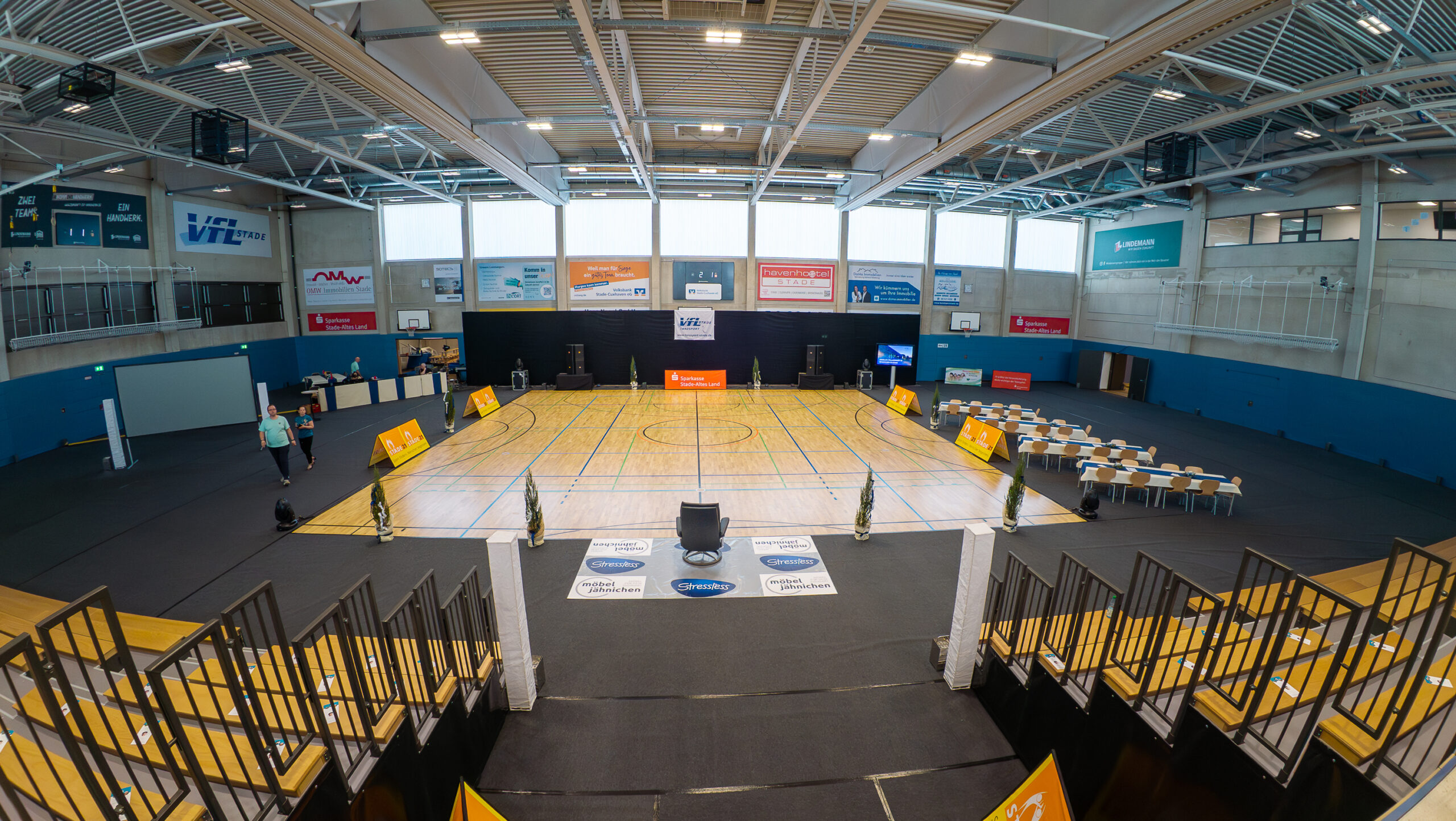 tade. Zwei Tage lang arbeitete die Abteilung daran, die Sporthalle in einem anderen Glanz erstrahlen zu lasse. Neben vielen Bannern, Banden, Roll-Ups und Flaggen mussten mehrere hundert Meter Teppiche und Kabel verlegt werden. Die passende Beleuchtung, eine vier Meter hohe Rückwand, Fernseher und Leinwand sowie eine große Soundanlage mussten ebenso aufgebaut werden. Als die letzten Helfer den Sportcampus kurz vor Mitternacht verließen, waren sie seit fast 15 Stunden im Einsatz.